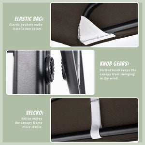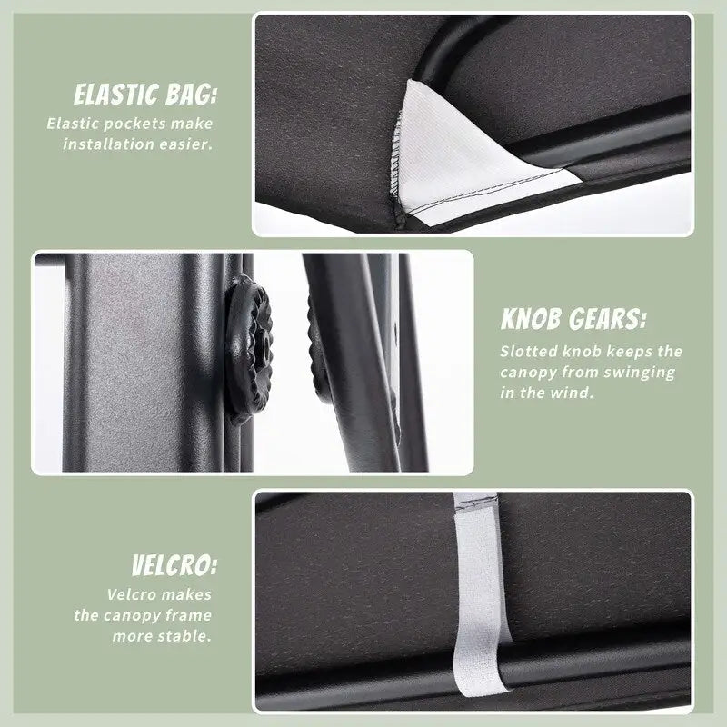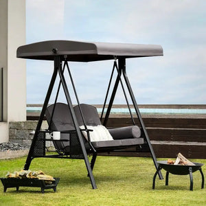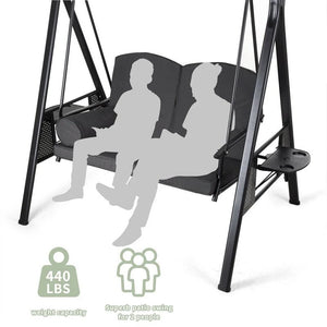 Relax in the comfort of your own backyard with Pamapic's 2-Person Metal Patio Swing. With a weight capacity of 440 pounds, this swing is designed to be durable and long-lasting. The swing features an adjustable canopy made of weather-resistant polyester, which provides optimal shade on sunny days. The steel frame is powder-coated to protect against rust, and the bottom is wrapped with anti-slip plastic foot covers to prevent slipping. The swing also comes with two removable cushions and a pillow, as well as trays for drinks and snacks. Enjoy a peaceful outdoor retreat on your porch, garden, or balcony with this versatile swing.