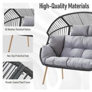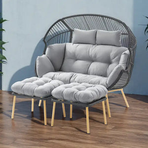 2 Person Outdoor Patio Double Egg Chair with Ottoman - Dark Grey