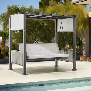 The patio swing is constructed of a metal iron frame with a rust-resistant coating, which ensures long-lasting durability. This outdoor swing is designed with a metal frame pergola that is suitable for different outdoor areas such as the backyard, lawn, deck, garden, patio, or poolside. If you want to enjoy leisure time outdoors, this swing chair is an excellent choice.