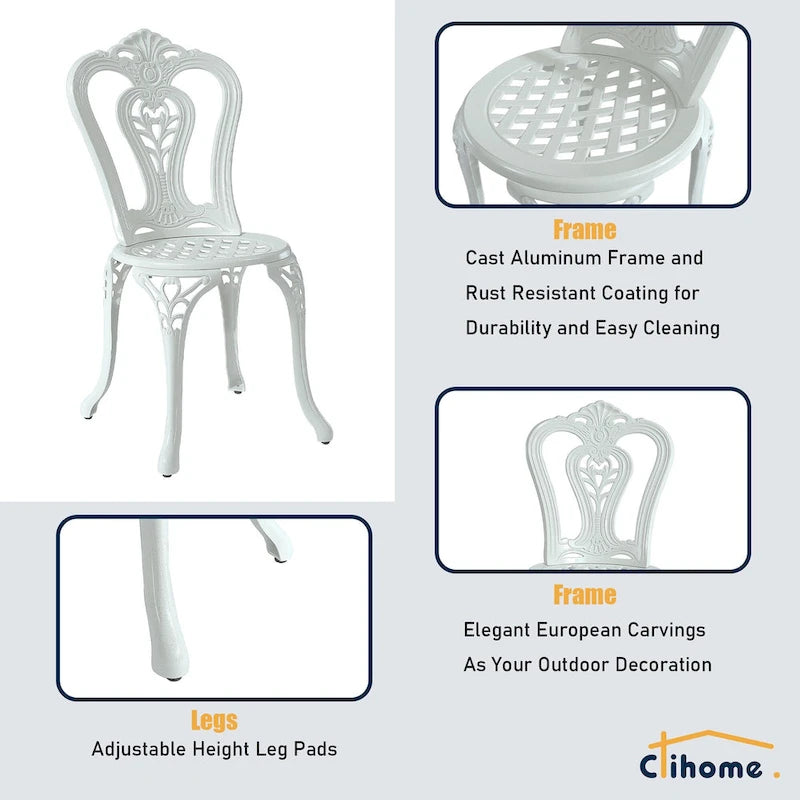 Ensemble bistro d'extérieur 3 pièces en fonte d'aluminium