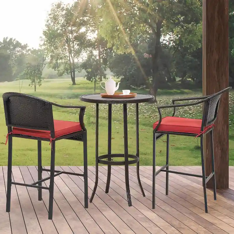 Ensemble de 3 tabourets de bar d'extérieur en résine tressée avec table