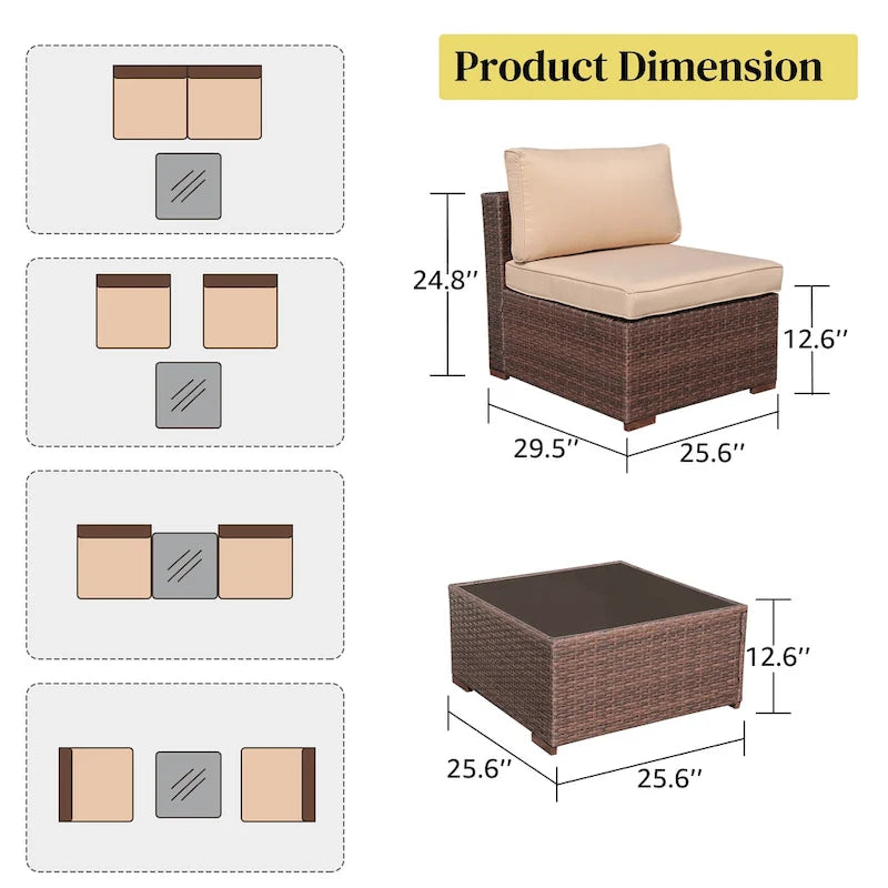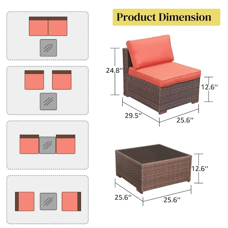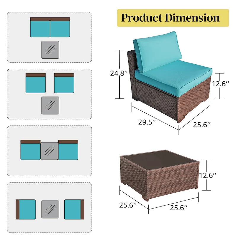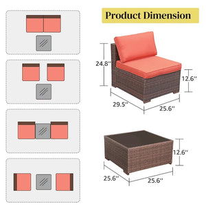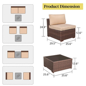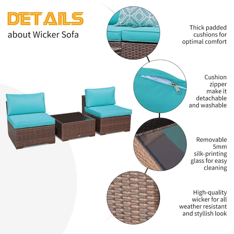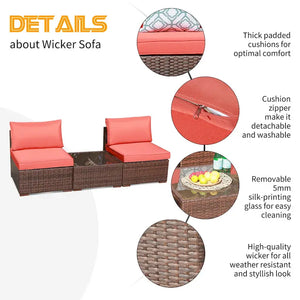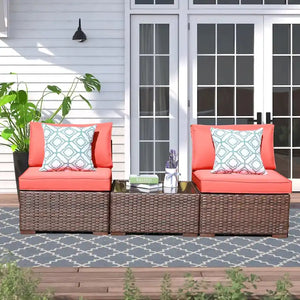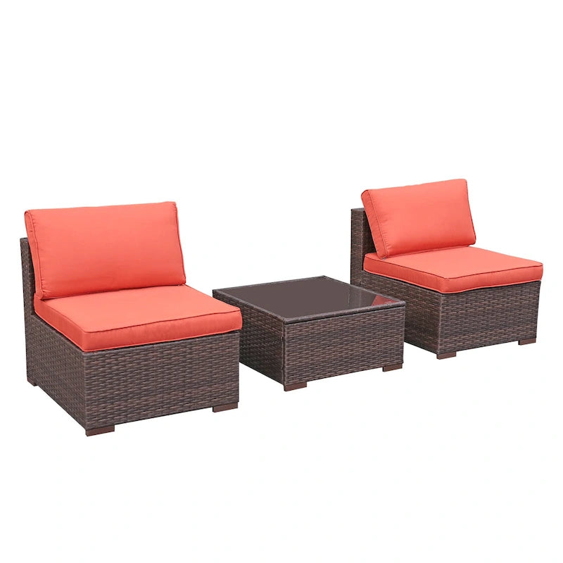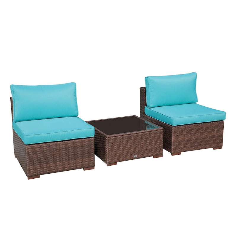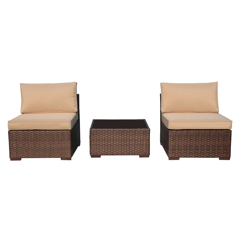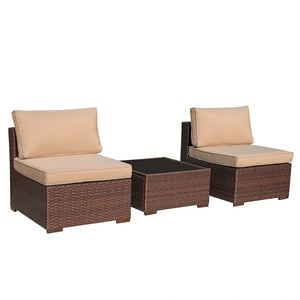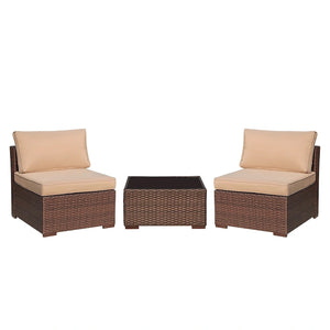 3-Piece Patio Modular Sofa Wicker Armless Chairs with Coffee Table