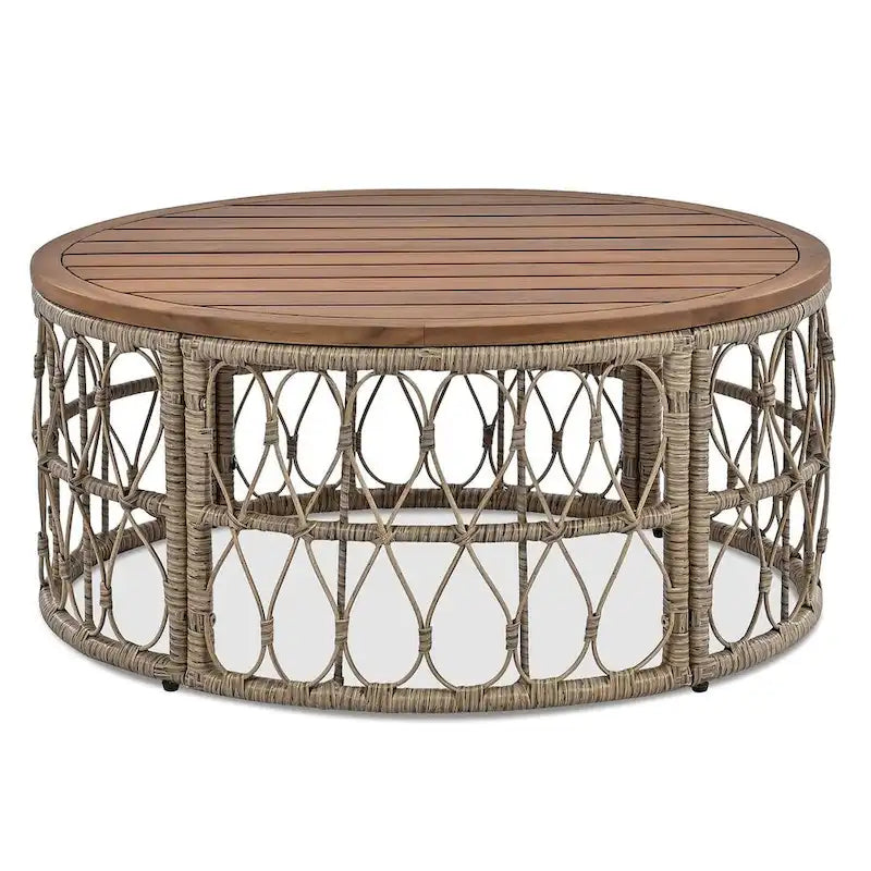 - Matériaux : résine tressée PE, bois d'acacia, polyester