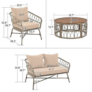 Ensemble de mobilier de jardin bohème 4 pièces pour 4 personnes