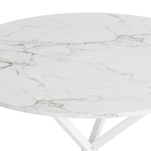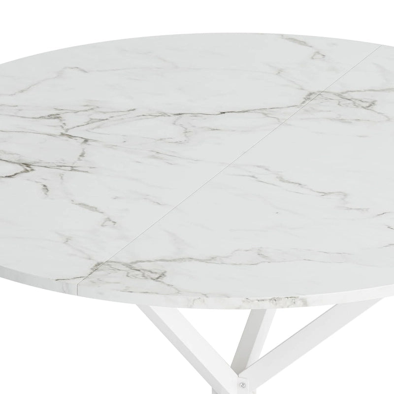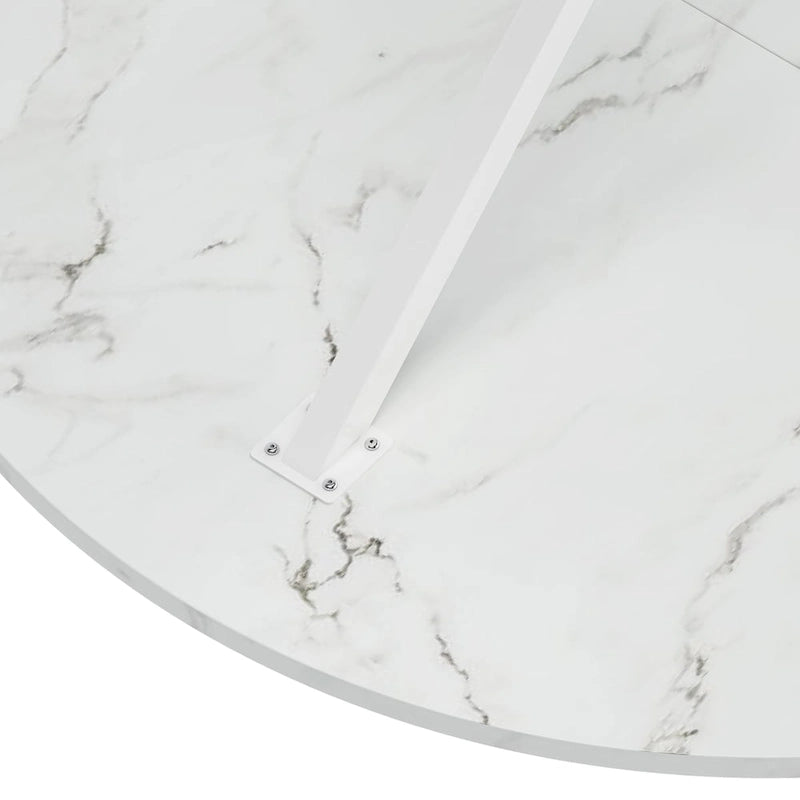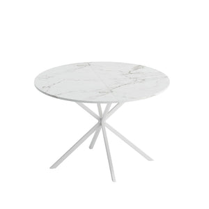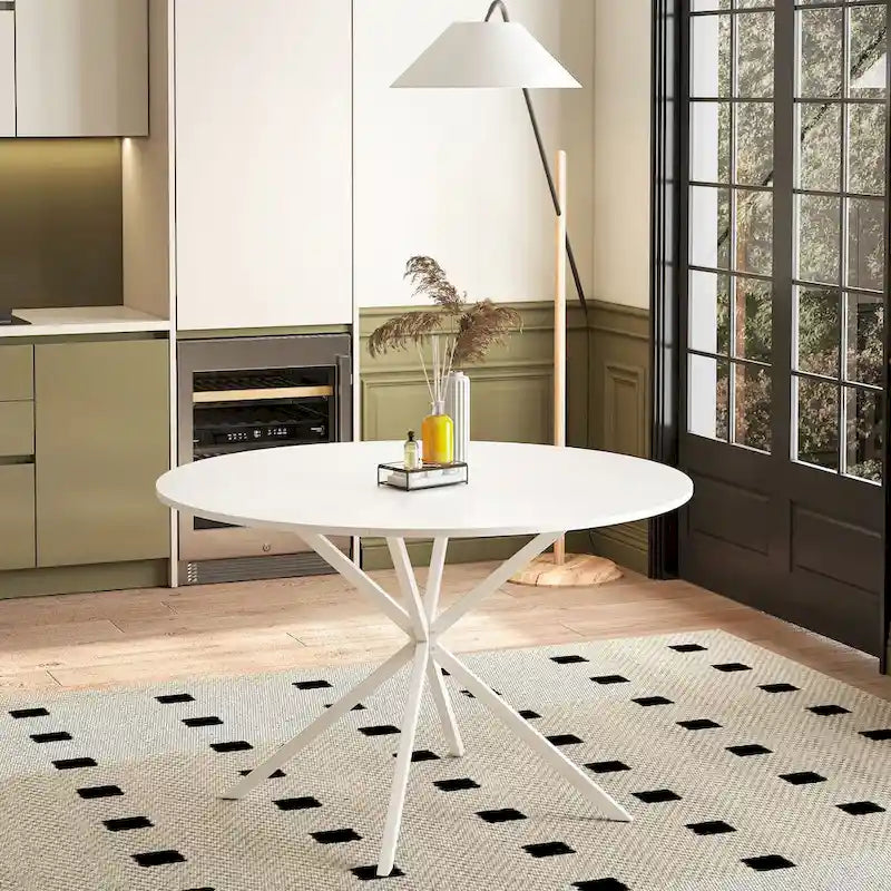- 1.High-quality materials:This white round dining table is made of a combination of high quality MDF table top and high quality metal iron legs, which provides a solid foundation for the modern round dining table, and also allows you to get a better experience when applying the table.