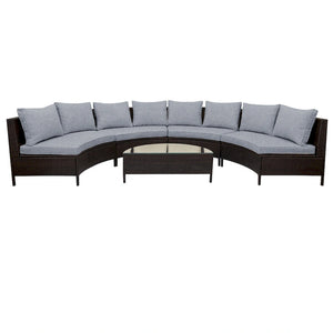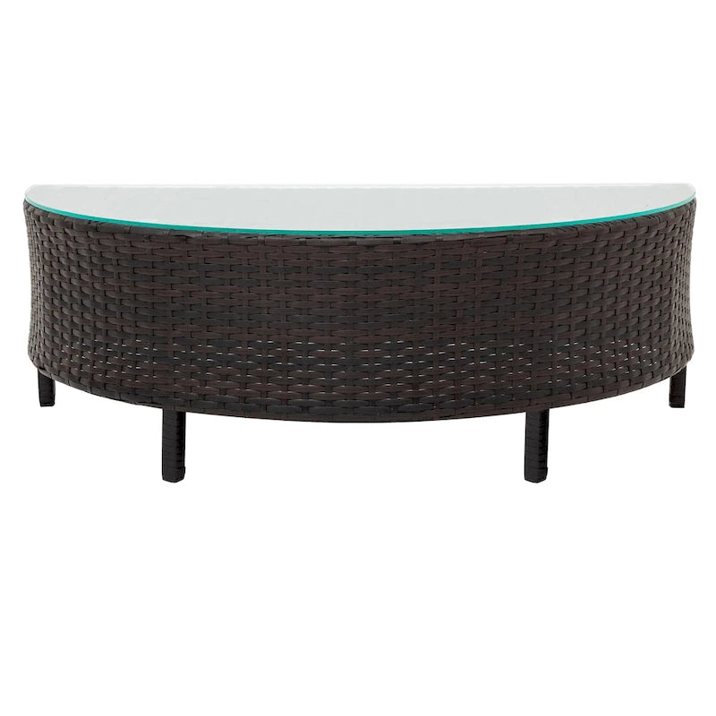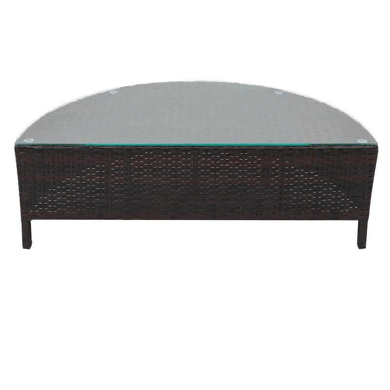 5-Piece Outdoor Rattan Half-Moon Sectional Sofa Set with Tempered Glass Coffee Table