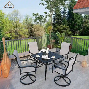 5 Piece Steel Frame Patio Dining Set, Swivel Dining Chair