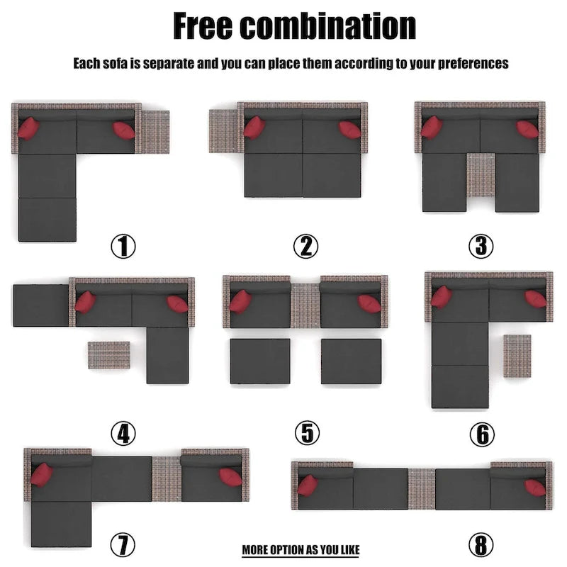 The sofa size in big size which is suitable for average height/weight people. Patio furniture Sectional sofa sets freely rearranged into different combination for different occasion. Widely used for outdoor patio, porch, backyard, balcony, poolside, garden and other suitable space in your home. When user don't use it, advise user to take cushions inside or buy a cover for longer service time