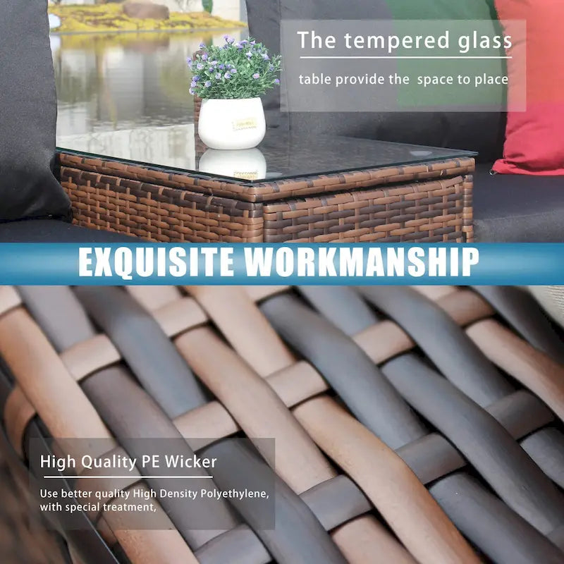 - UV protected cushion covers are also Waterproof( Not Rain-Proof) and Machine washableThe wicker coffee table features a gorgeous tempered glass top.