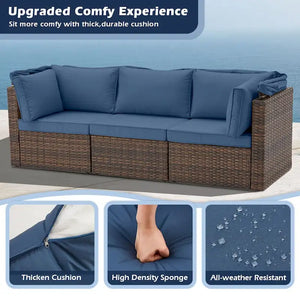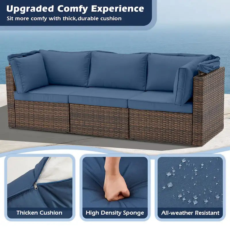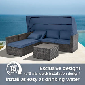Say goodbye to the hassle of traditional patio furniture installations! Have you ever experienced the tedious installation of wicker patio furniture? Countless screws and mounting steps-so headache! We exclusive design of the Quick-Lock is added to achieve simple assembly, minimal installation time while ensuring the patio furniture stability and durability. In just 15 minutes or less, you can say goodbye to traditional 1-2 hours assembly!