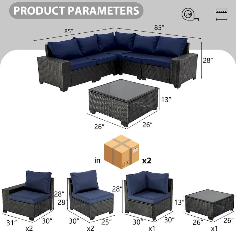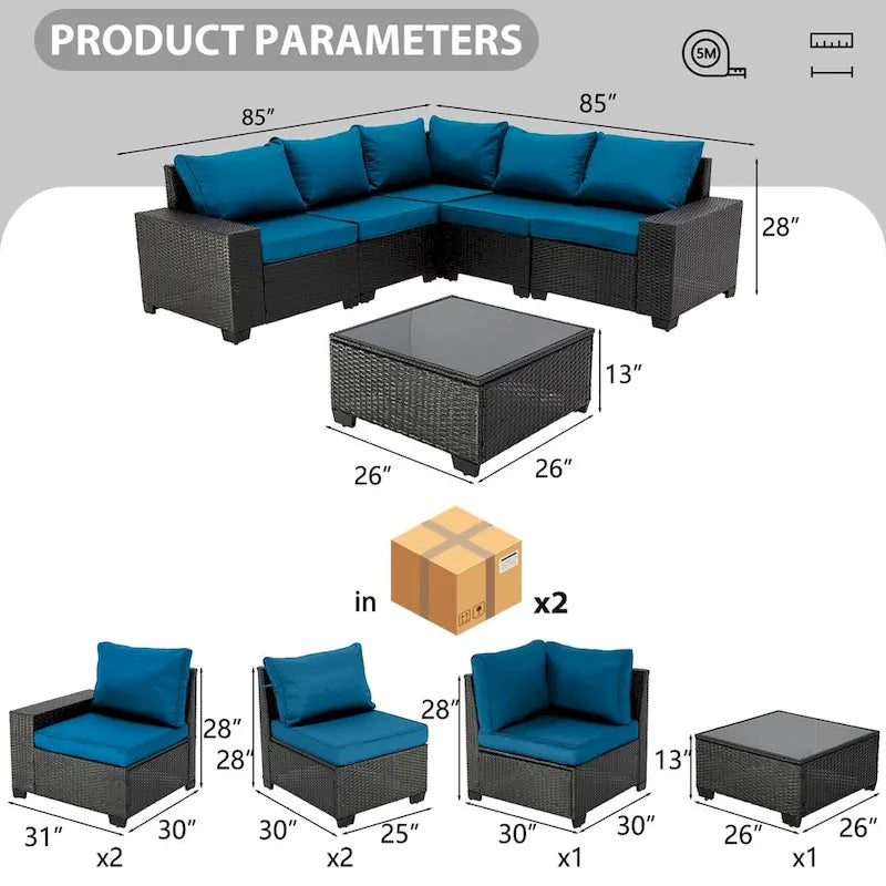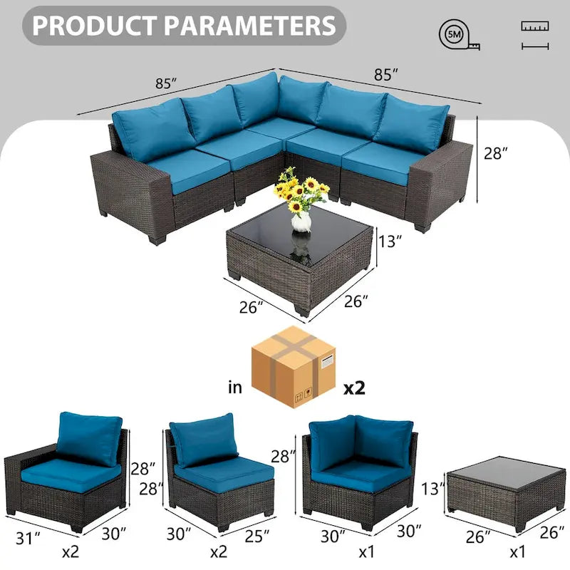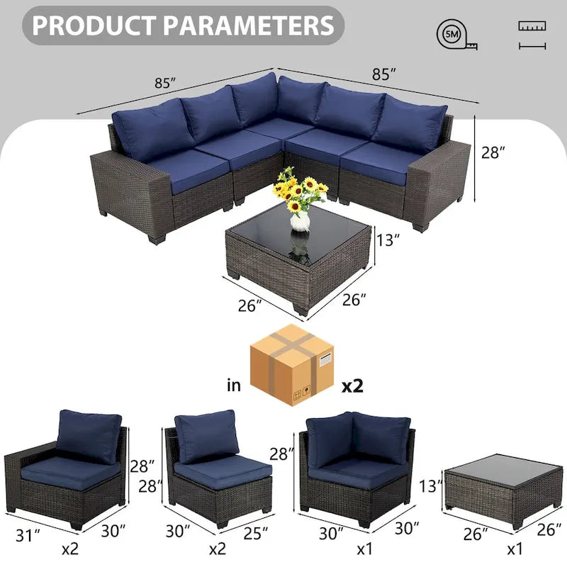 - We provide a full set of 6-piece sofas, installation tools and satisfactory after-sales service. The products will be shipped in 2 boxes. Please wait until all goods are shipped before assembling.