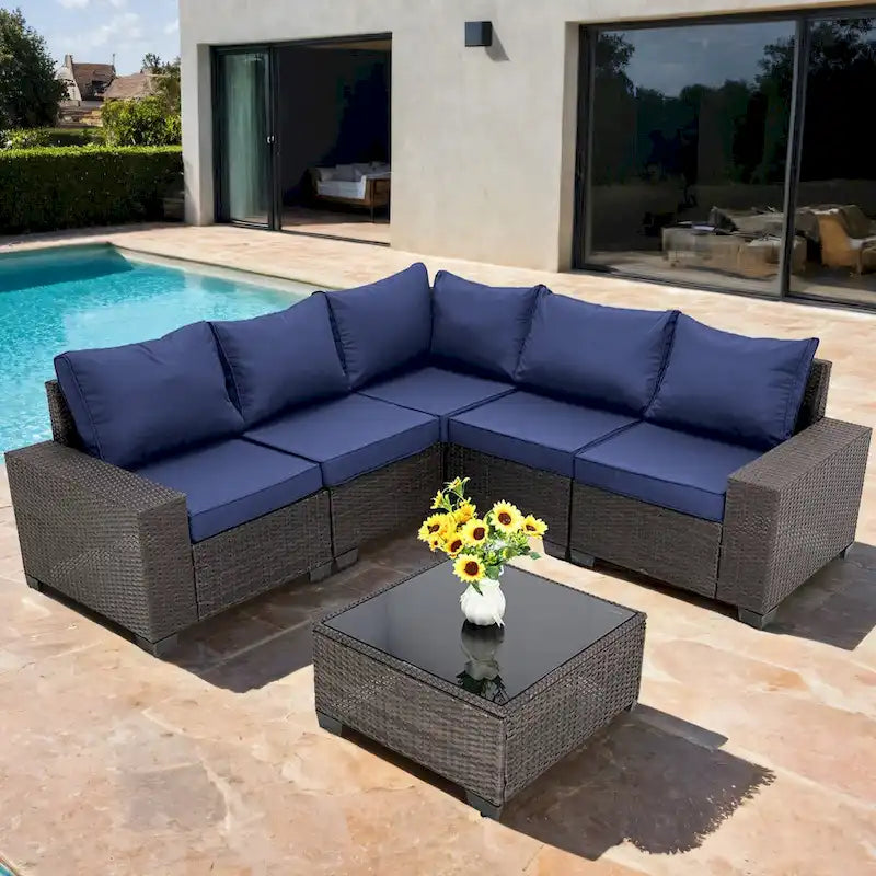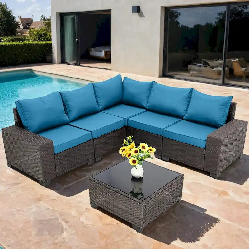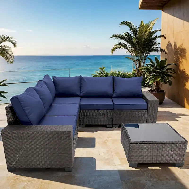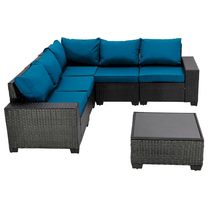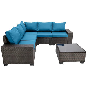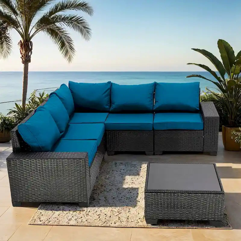 6-Pieces Wicker Outdoor Sectional Set with Cushions and Coffee Table