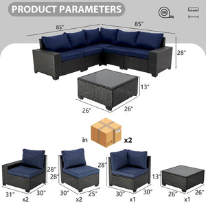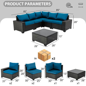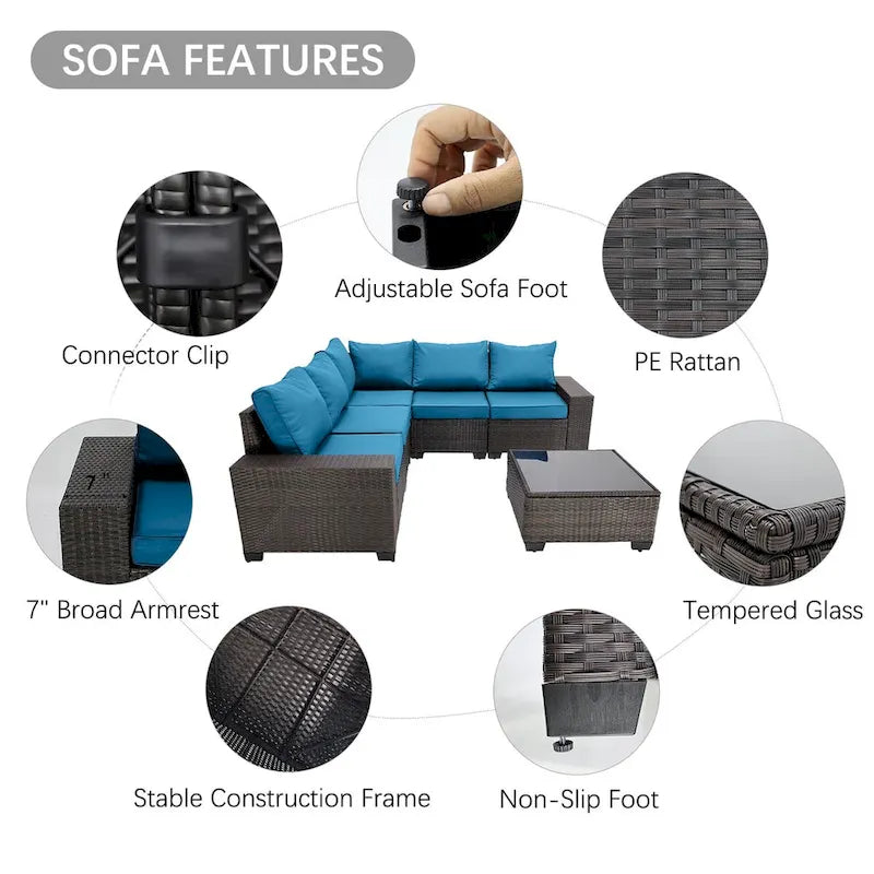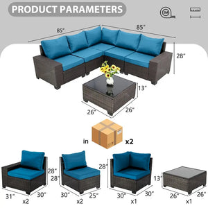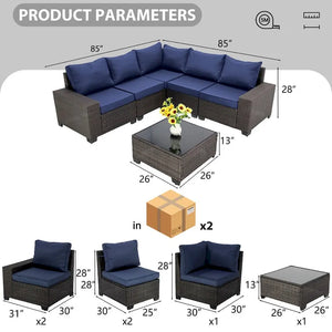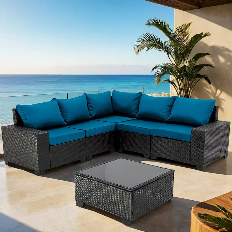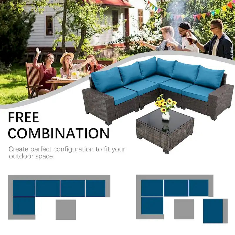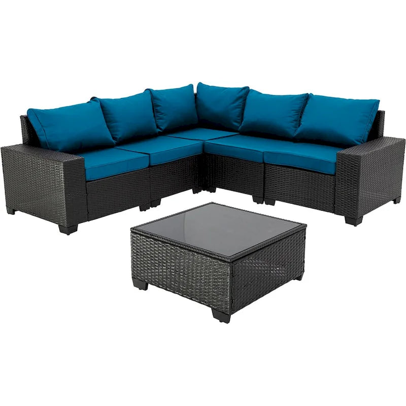 6-Pieces Wicker Outdoor Sectional Set with Cushions and Coffee Table
