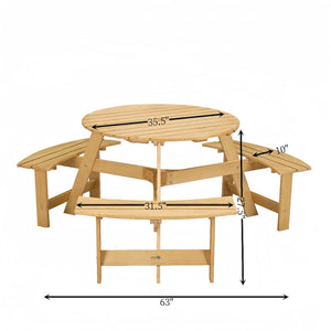 63 in. Wood Round Picnic Tables Set with Umbrella Hole and Benches