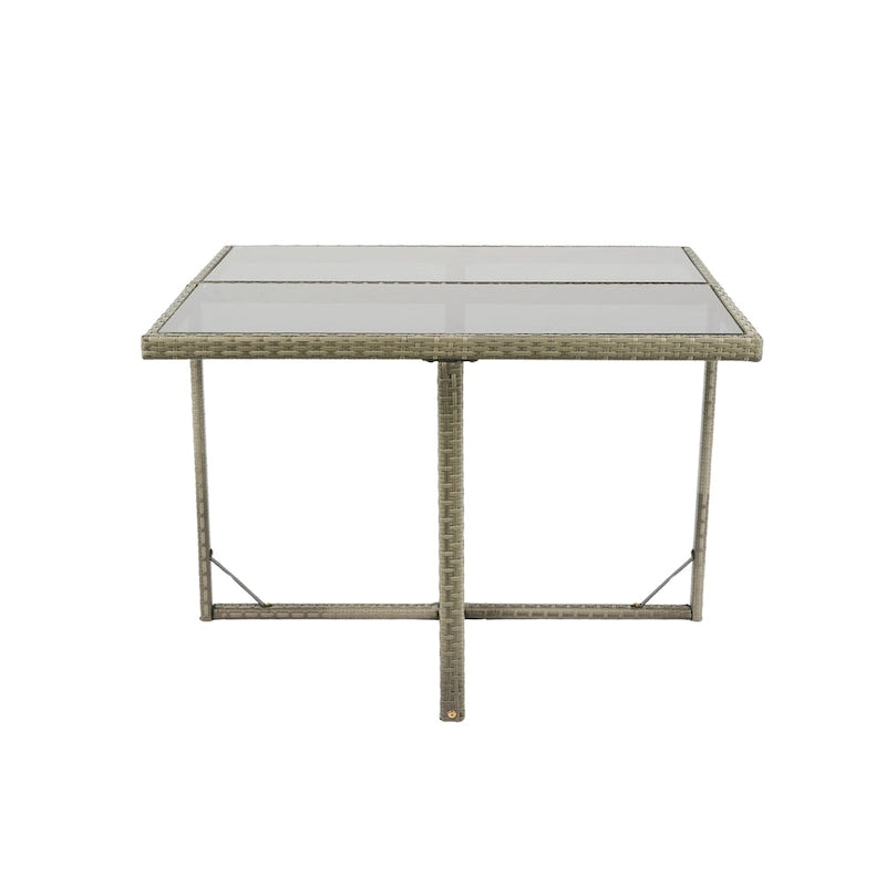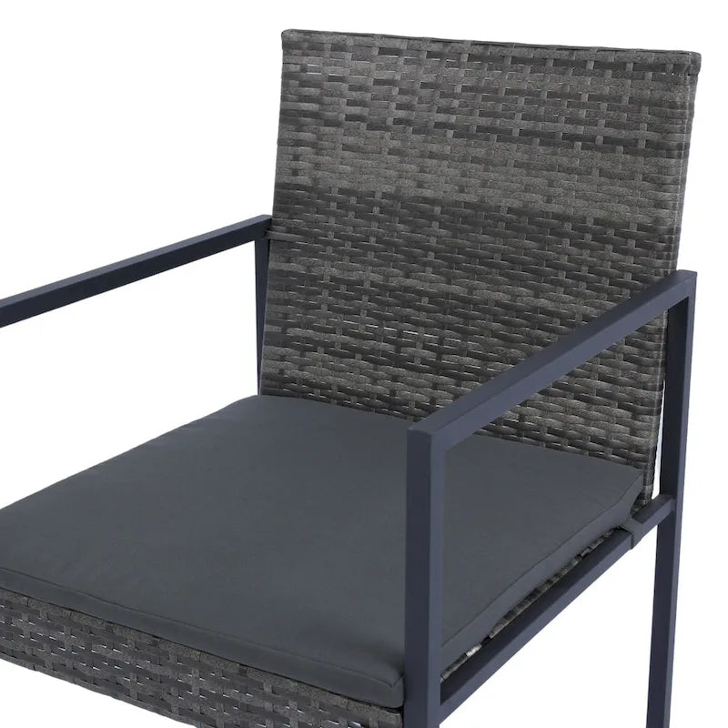 STURDY & DURABLE : Powder coated rust free premium steel frame with anti slip feet. All-weather hand woven rattan and eco-friendly STYLISH & BEATIFUL : Modern and stylish combination with grey wicker and dark grey cushion make this wicker dining set look fashionable and add the beauty for your courtyard which is perfect for any outdoor and indoor use. SPACE SAVING DESIGN : For all of the chairs, their backs are foldable so that cushions can be stored inside.By tucking stools under the chairs, the whole seatings will be put underneath the tabletop for space-saving when not in use. QUICK & EASIER : Instructions and all hardware included. All-weather rattan lasts for a long time, easy to maintain and clean