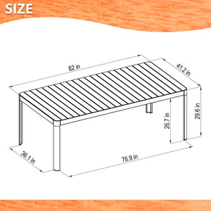 DIMENSIONS > Table 86L x 39W x 30H. Chairs 22L x 20W x 31H.