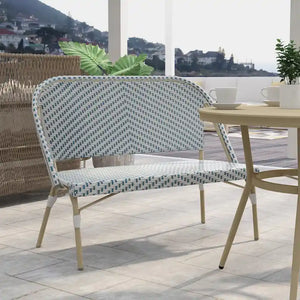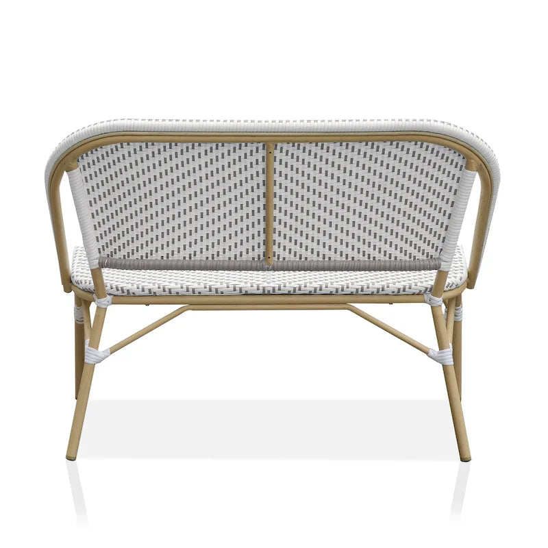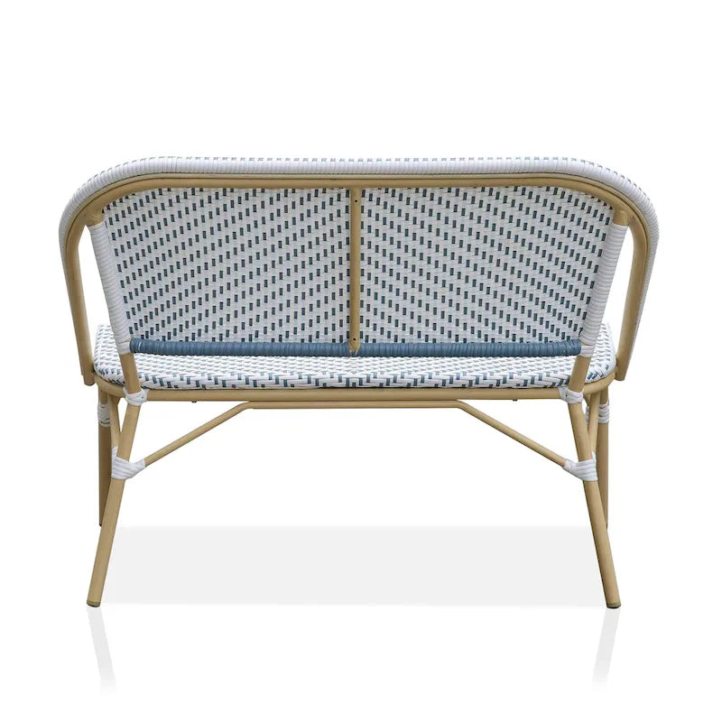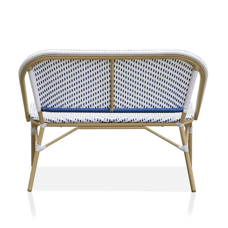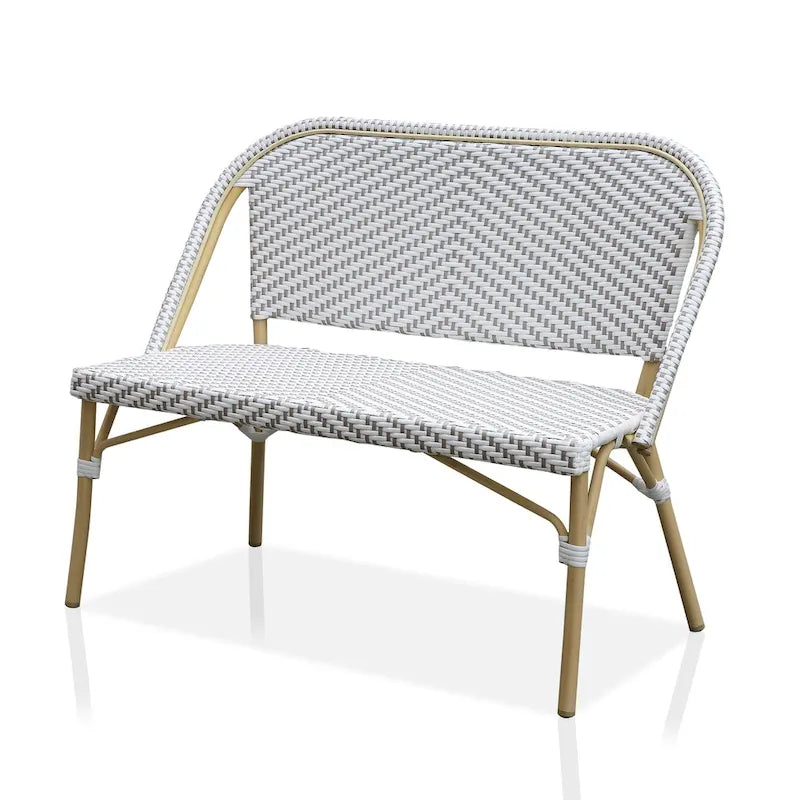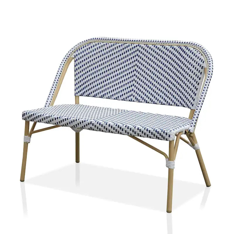 Create a romantic ambiance in your patio or garden with this French-style loveseat bench by Furniture of America. The natural toned aluminum frame exudes tasteful allure, while the diagonal resin wicker design is resistant to fading, water, and wear. Available in Blue, Grey, Navy, or Black, this loveseat is a perfect addition to any home decor.