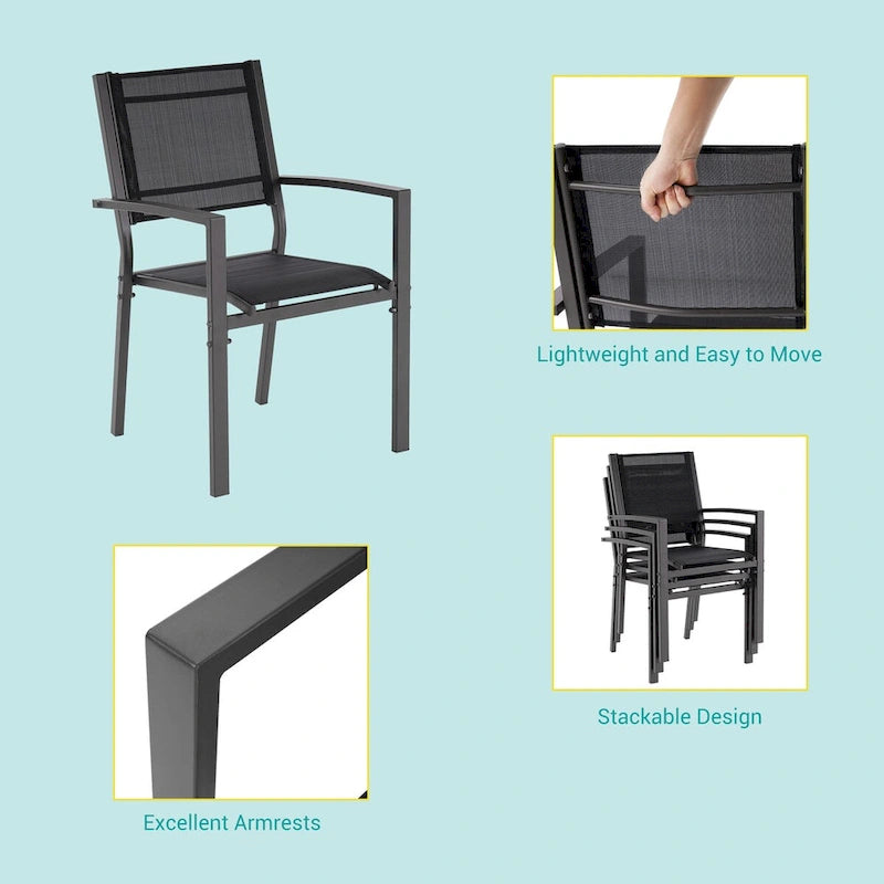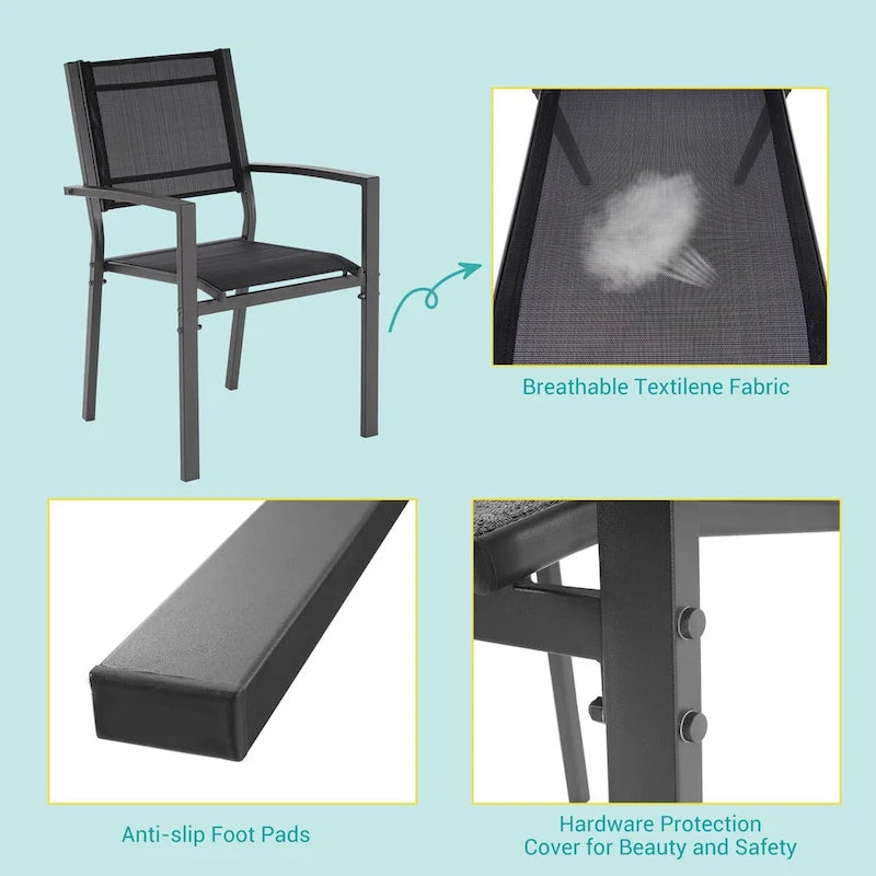If you're tired of covering up your upholstered sofa's cushions or moving them indoors on rainy days, then we recommend our Textliene dining chair set - you really need it. Specially engineered Textliene material can withstand any type of weather. The breathable fabric automatically filters rainwater and dries quickly.