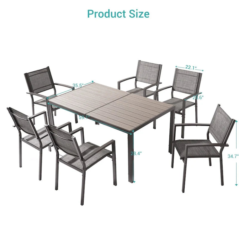 BONOSUKI Outdoor 7-Piece Dining Set Textilene Fabric w/Powder-coated
