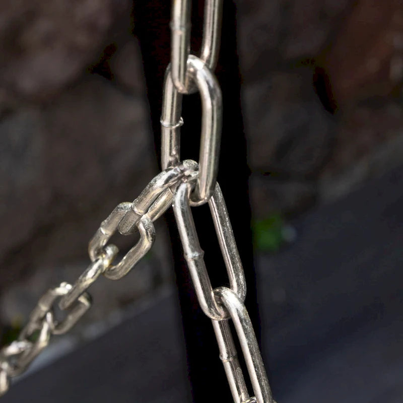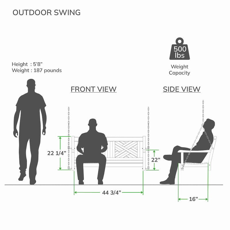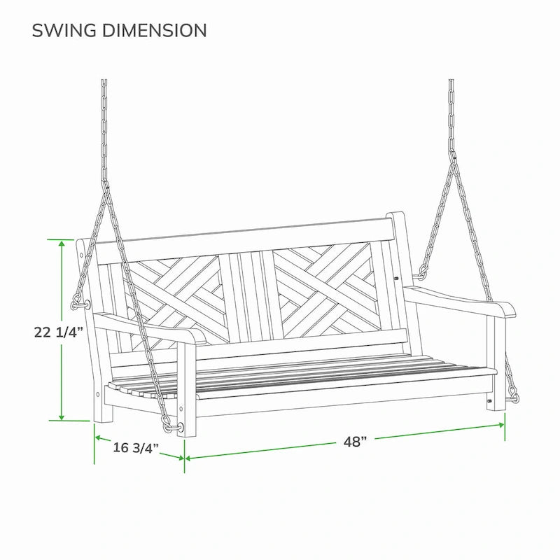 - Sleek chains add a contemporary touch to your outdoor swing.