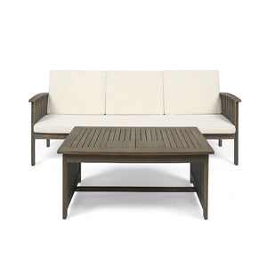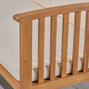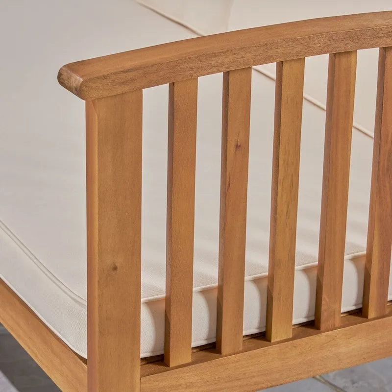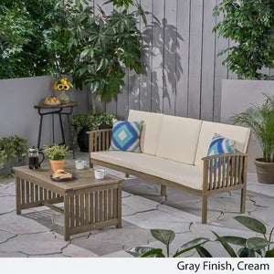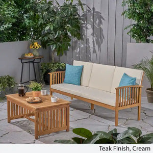 This inviting, cozy, uniquely stylish set boasts a naturally durable acacia wood frame and water-resistant cushions that bring a polished look to your decor. Easily seating up to three, this sofa set offers a whole new living room look certain to beckon daily.