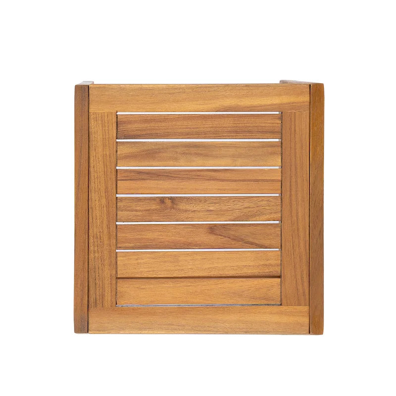 Dimensions: 15L x 15W x 19.25H Material: Solid Acacia Wood Weight: 8.38 lbs Assembly Required: Yes Made in Vietnam