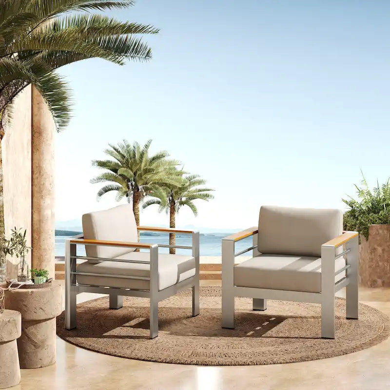 The Everett Outdoor Aluminum Club Chair offers the perfect balance of elegance, comfort, and durability. Ideal for patios, gardens, and outdoor retreats, this chair enhances your space with its ergonomic design and premium craftsmanship.Ergonomic Comfort: Designed with contoured seats and backrests for optimal lumbar support and hours of relaxed seating.