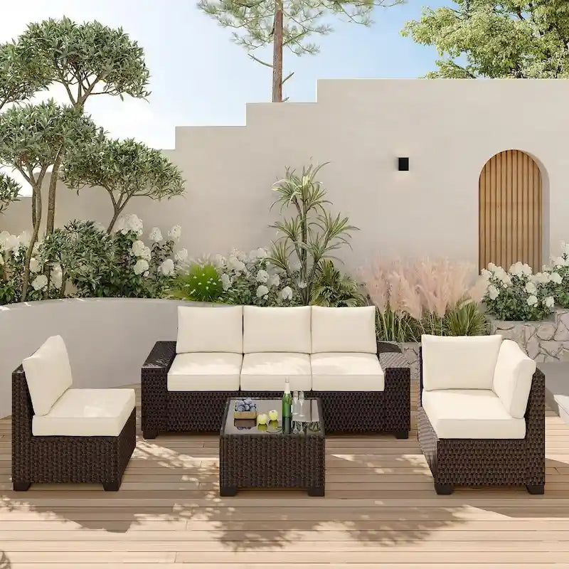 Eie 6-piece Outdoor Patio Furniture Wicker Sectional Sofa Set