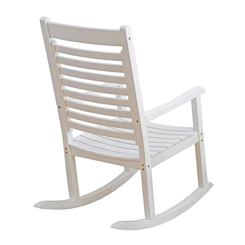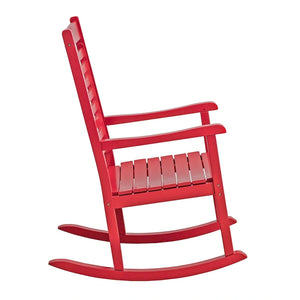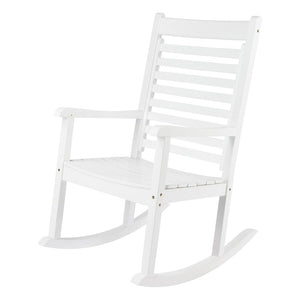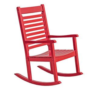 The Elemental Modern Oversize Wood Outdoor Patio Rocking Chair is made of solid wood, our rocking chair is designed with wider and more comfortable curved seat, as well as armrests and slatted high backs for optimal relaxation. The ergonomic slatted curved seat ensures comfort for long-term outdoor use. To ensure durability, our rocking chairs are coated with an environmental-friendly paint that is weather resistant and protects against the elements.