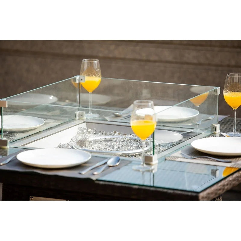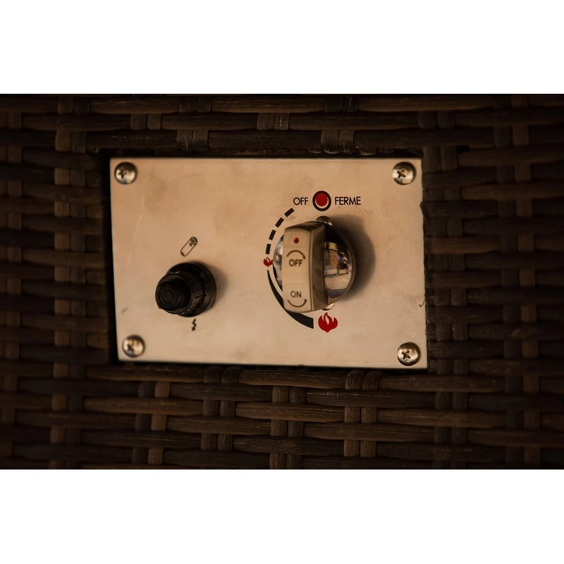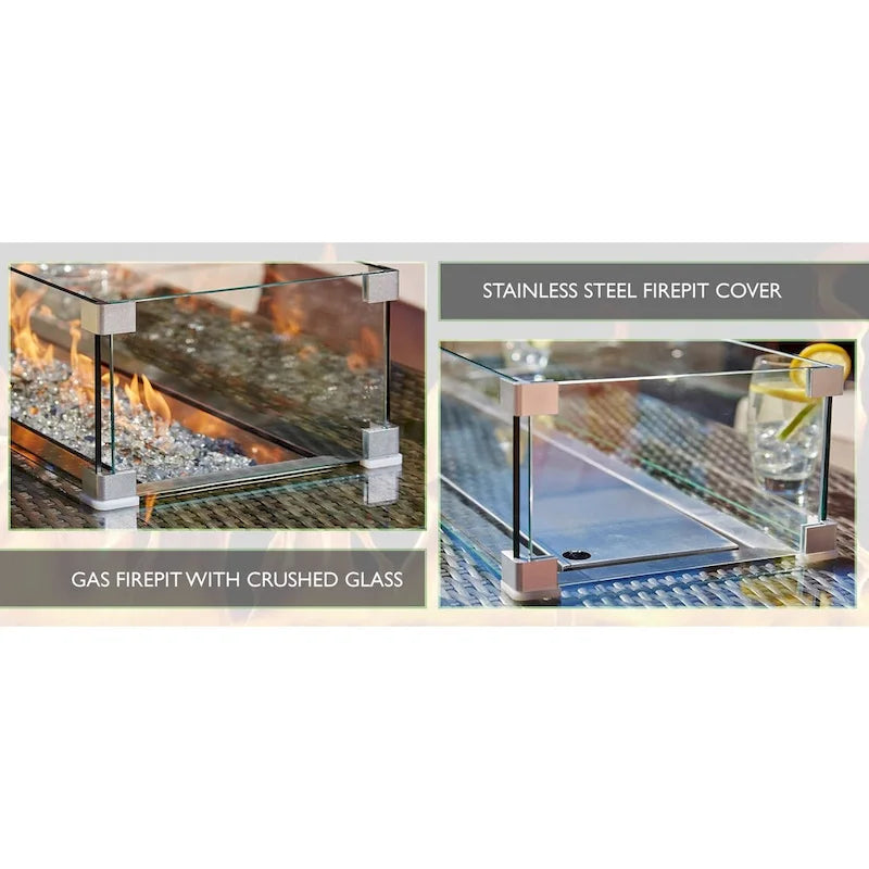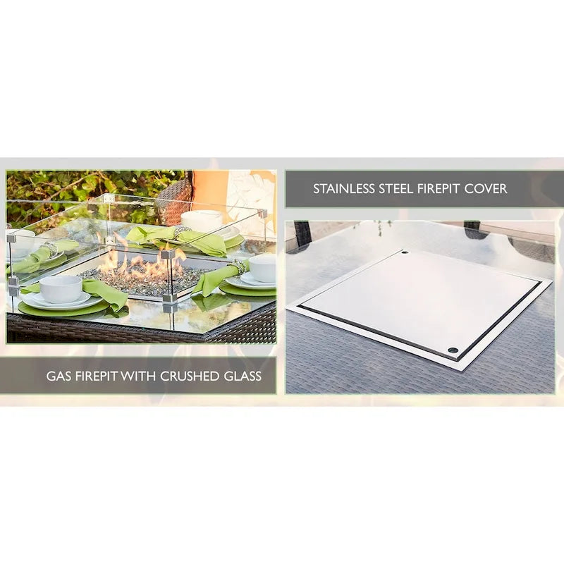 Featuring a unique yet flawless pairing of stainless steel and wicker, this set will become the perfect focal point of your backyard space. The set is not only a beautiful and focal centerpiece for your garden but is also very practical. The table has a heat adjustable stainless steel gas fire pit. The flames emerge from the crushed glass central feature and will keep you warm and comfortable long after the sun goes down, enabling you to continue relaxing long into the night.