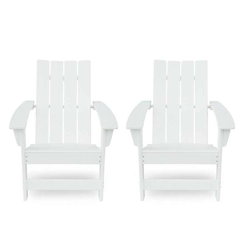 Made with an extremely durable, high-density resin, this classic, crisply styled Adirondack chair twosome offers a striking, rustic influence to your space, complete with water- and impact-resistant properties, making it ideal for a private conversation for two on the deck at sunset.