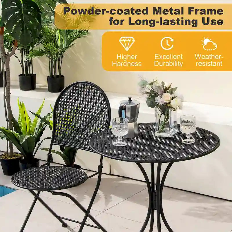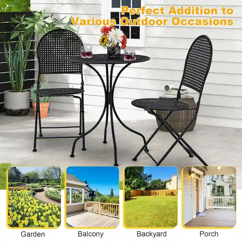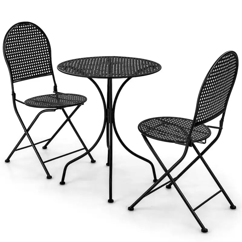 Gymax 3 PCS Patio Bistro Set All-weather Metal Table & Chair Set for 2
