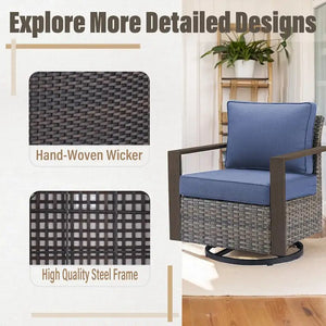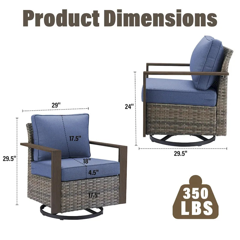 This patio armchair blends style and relaxation, making it a great addition to your outdoor space. It's crafted with a steel inner frame wrapped in weather-resistant wicker and rattan, so it's designed to stand up to the elements. This chair features a 360 swivel, allowing you to face the sun or shade with ease, and a rocking motion for ultimate relaxation. Plus, it comes with two water-resistant cushions, filled with polyester and foam, and removable, machine-washable covers for easy care. With a weight capacity of 250 lbs., this chair is ideal for enjoying your time outdoors. Just remember to store it indoors or cover when not in use to keep it looking fresh.