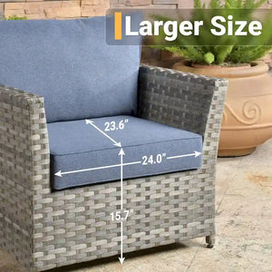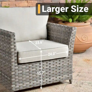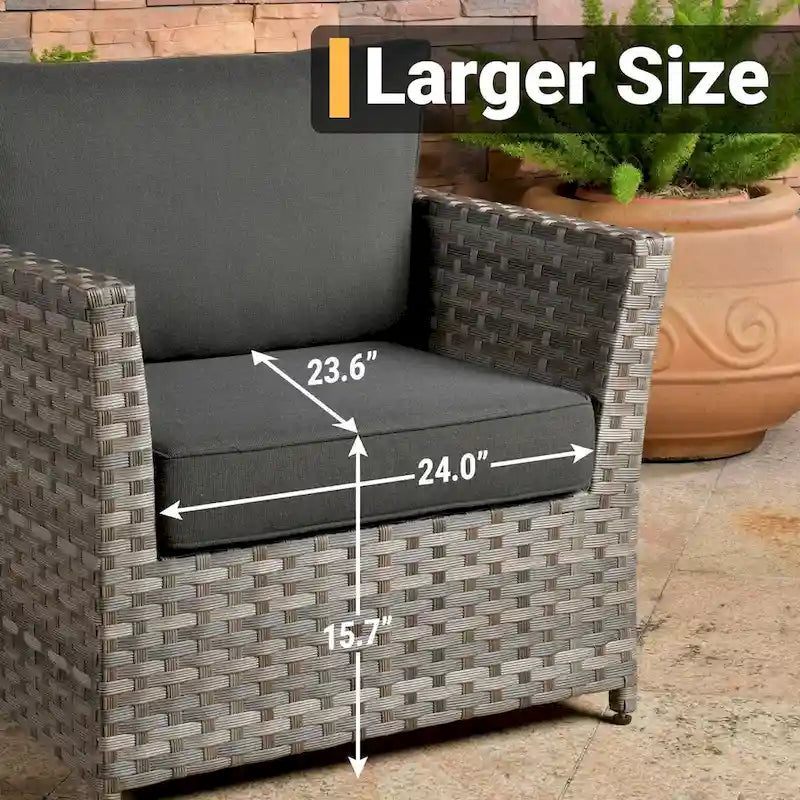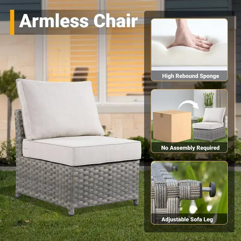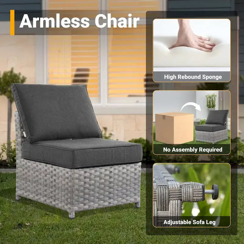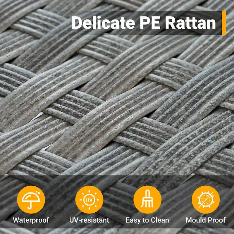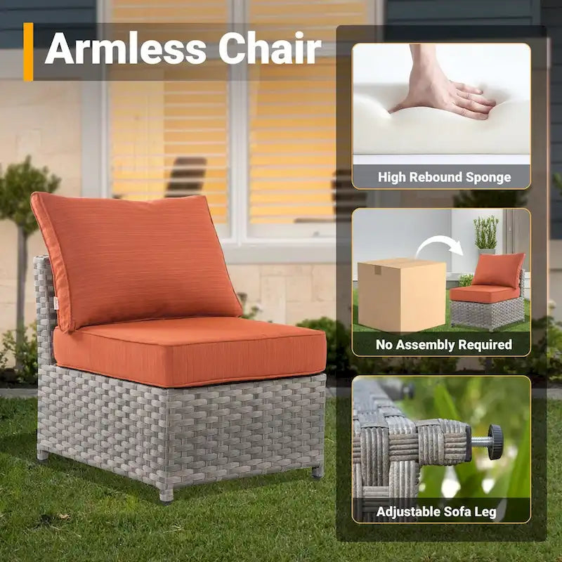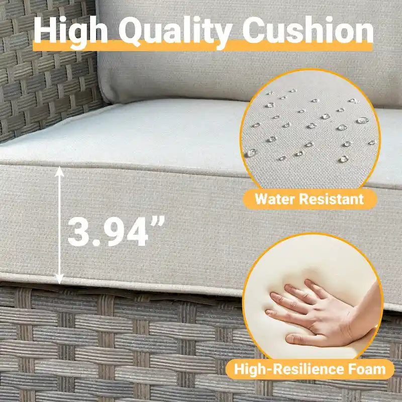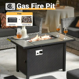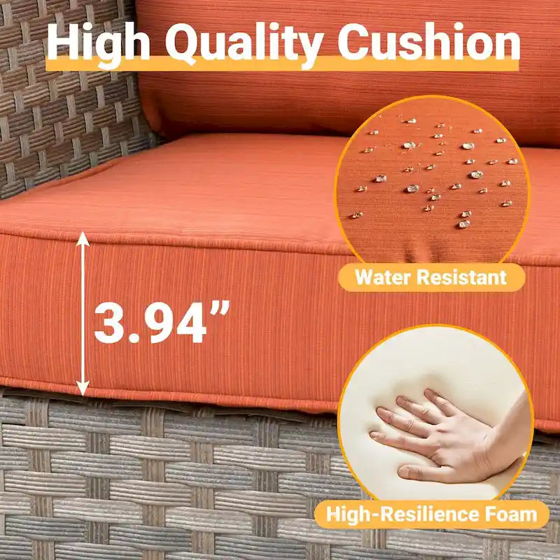 Elevate your outdoor living space with HOOOWOOO 10-piece Wicker Patio Furniture Sectional Set with Steel Fire Pit Table. This set boasts a modern and ergonomic design, handwoven sturdy wicker for a stylish and nature look. The thick and soft cushions provide unmatched comfort and support., while the fire pit table with steel construction, can produce a maximum heat output of 50,000 BTU to keep you warm and toasty. Enjoy the ultimate relaxation with this set , which comes with two corner chairs, two armless chairs, two single chairs, two ottomans, one coffee table and one fire pit table.
