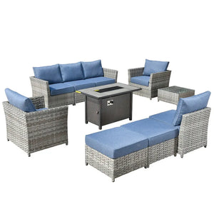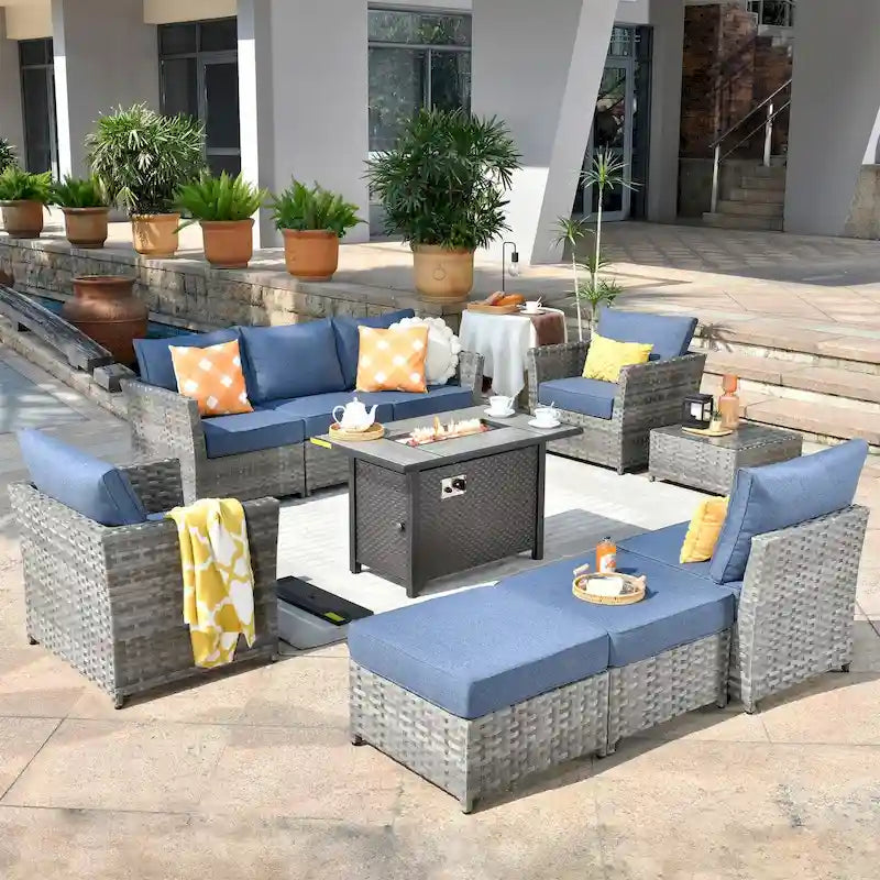 HOOOWOOO 10-piece Wicker Patio Furniture Sectional Set with Steel Fire Pit Table