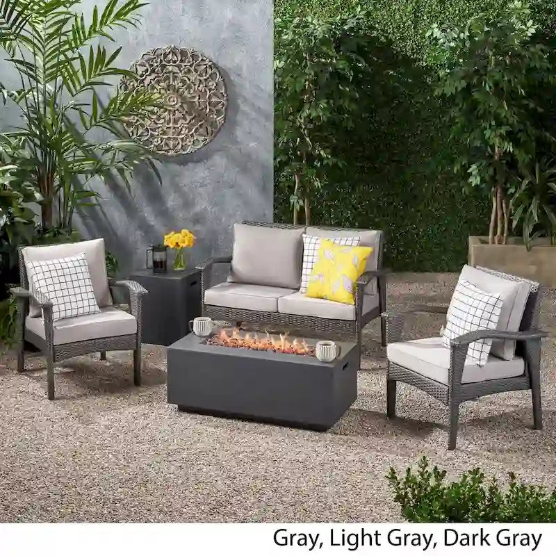 Kalo Outdoor 4 Seater Wicker Chat Set with Fire Pit by Christopher Knight Home