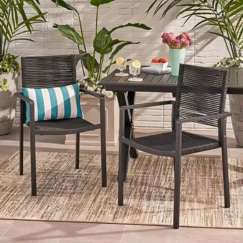 MODERN DESIGN: With clean, precise lines, our set of chairs is the ideal modern accessory for your outdoor space. Finished with unique rope weaving and smooth aluminum frames, this chair set not only offers a sleek, minimalistic look but also provides incredible structure for sturdy seating.