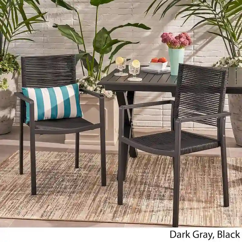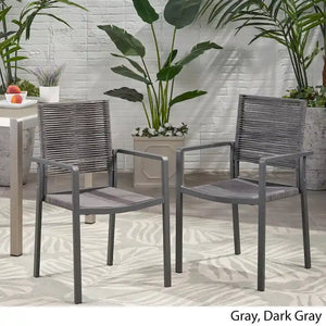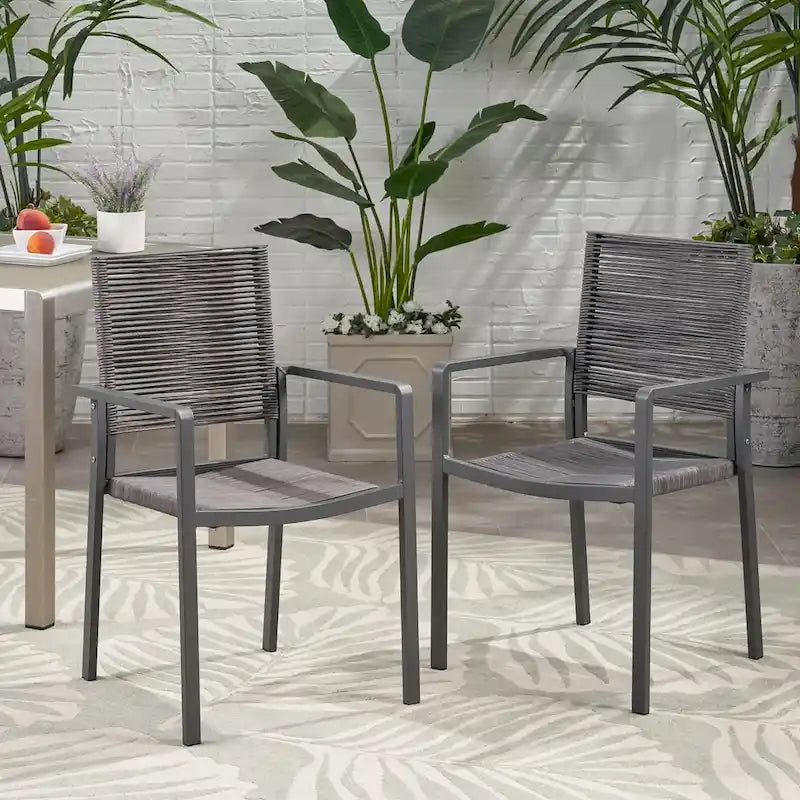 Surround your dining experience with incredible textures and unparalleled design with a simple yet redefining addition. Our set of dining chairs brings together stunning, hand-crafted roped weave with smooth aluminum frames to create a sleek and comfortable space for your backyard or patio. This chair set provides a breezy comfort that offers effortless relaxation while you enjoy an outdoor meal or just unwind during the summer season. With its intricate woven design, these chairs will have no problem blending into your outdoor dcor with its modern style and incredible durability.
