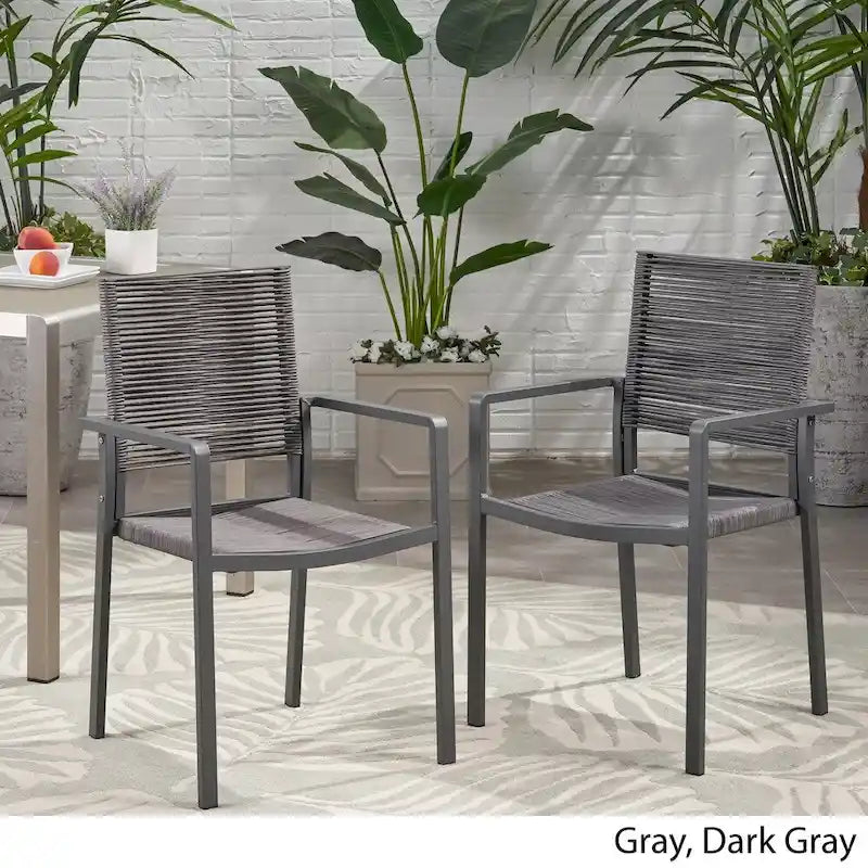 Lillian Outdoor Modern Aluminum Dining Chair with Rope Seat (Set of 2) by Christopher Knight Home