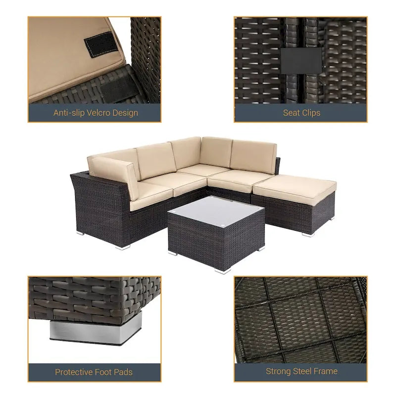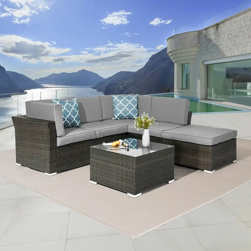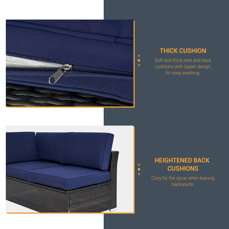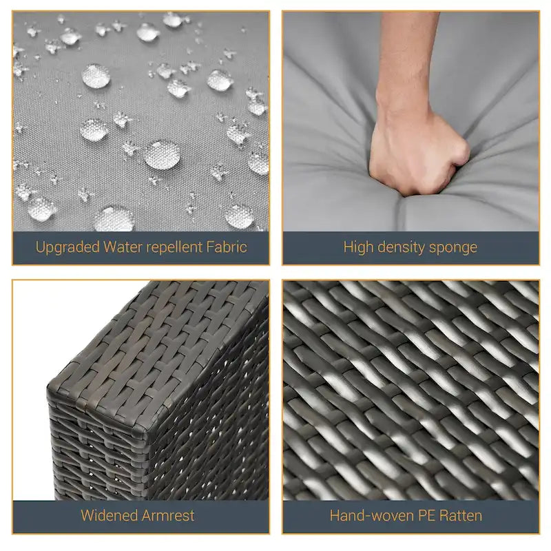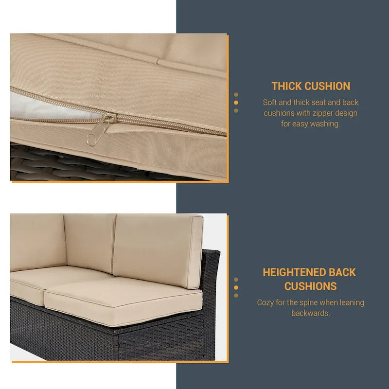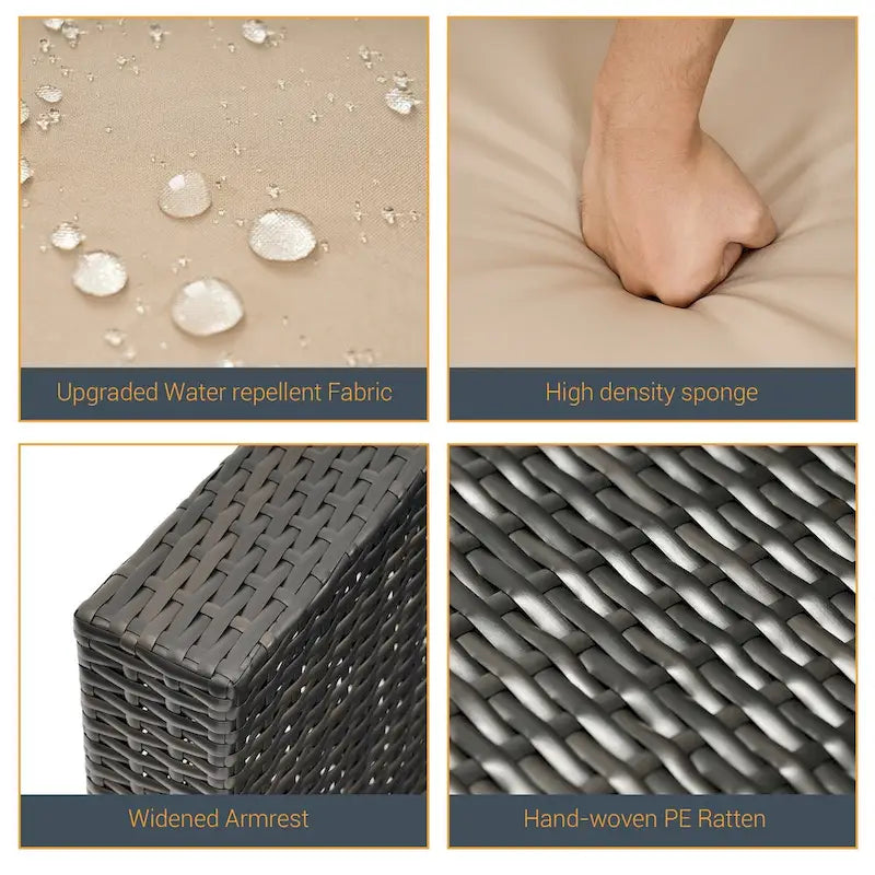 You must not miss such a set of free combinations and unique designs of the outdoor sofa. PE rattan material makes it light and easy to move. The four modules can be combined freely to facilitate various occasions in the courtyard or on the terrace. Hand-woven brown rattan makes your outdoor sofa look unique compared to other ordinary sofas and complements the flowers and trees on the patio.
