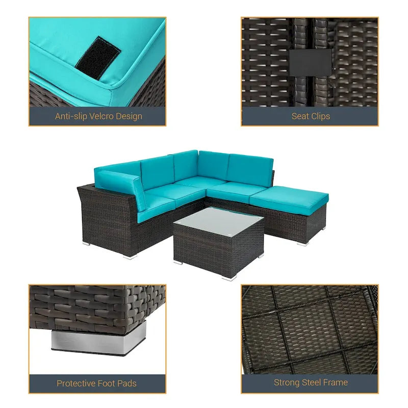 LIVOOSUN 4Pcs Rattan Wicker Conversation Patio Furniture Sets,w/Table