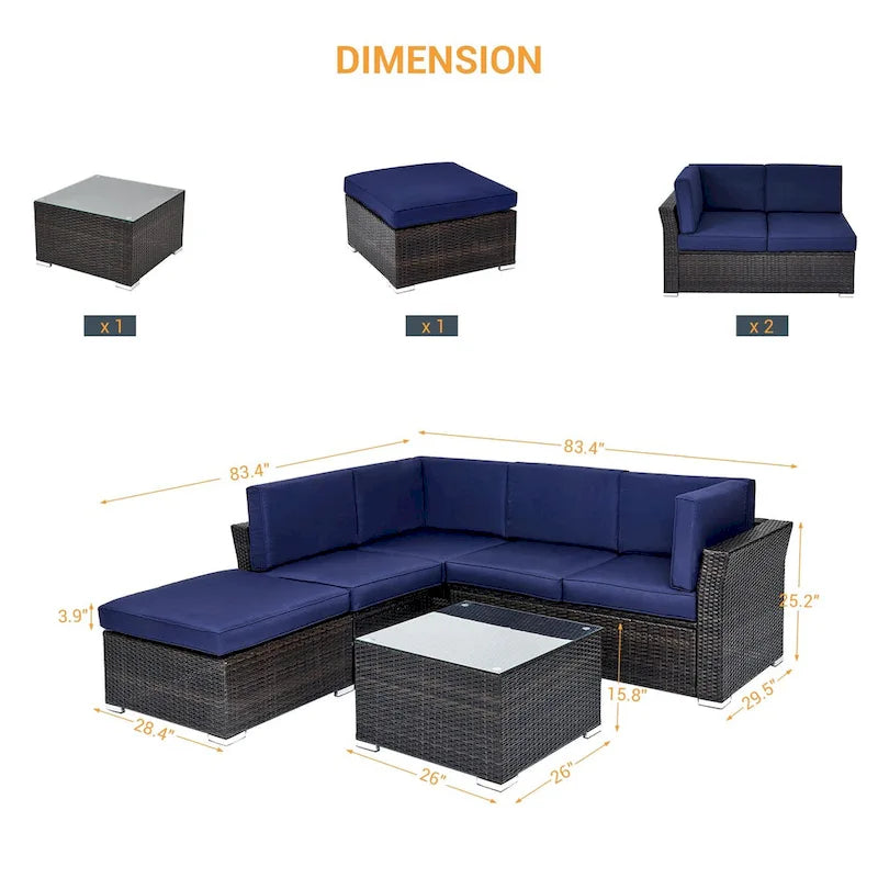 - Set includes 2 loveseats, 1 ottoman chair, and 1 coffee table