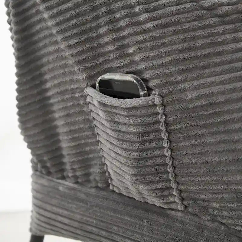 - Design: Includes ottoman and side storage pocket.