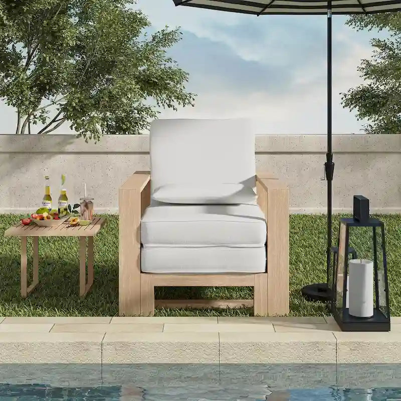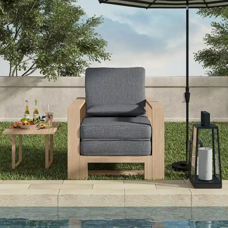 - Acacia Wood Construction: The frame of the chair is constructed from sturdy Acacia wood, known for its durability and natural beauty. This wood is suitable for both indoor and outdoor use.