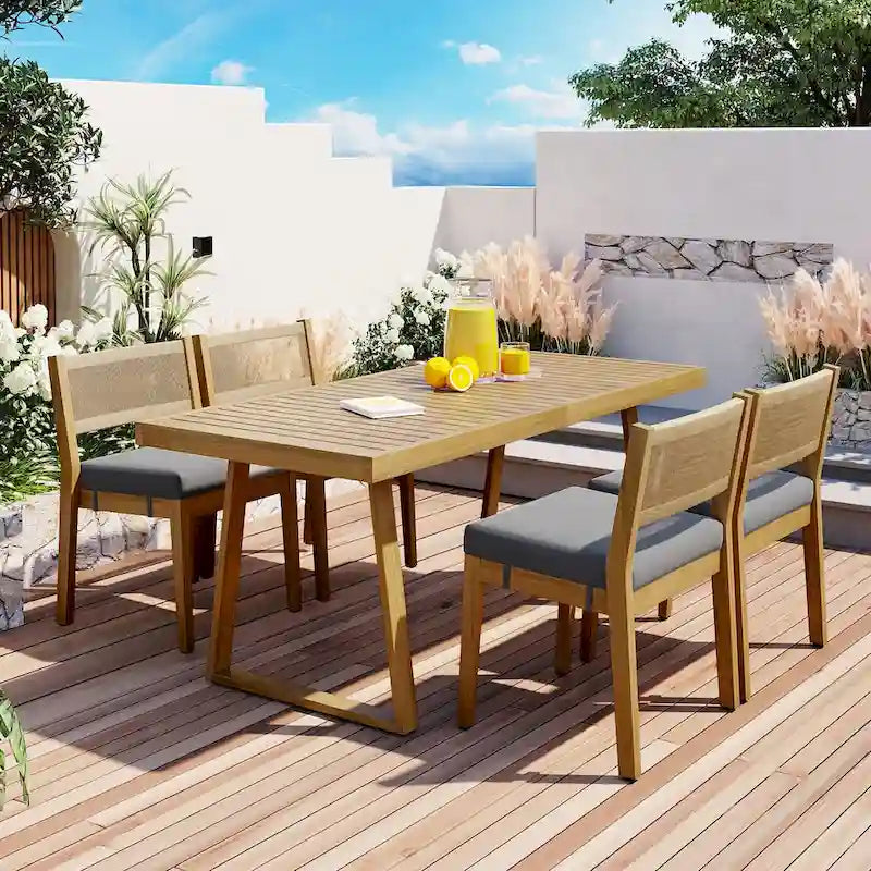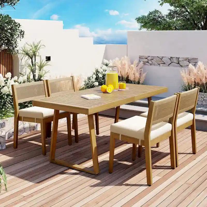 [Comfortable Materials]: The thick cushions of this set provide a luxurious seating experience, ensuring comfort during long gatherings or leisurely outdoor meals. The acacia wood construction not only adds a natural and warm feel to your outdoor area but also offers durability and reliability.