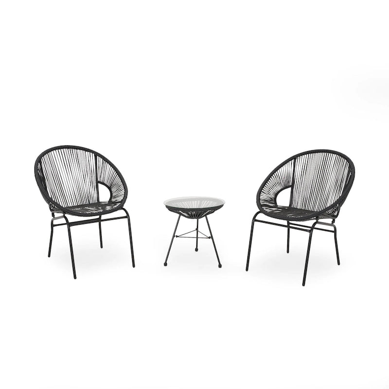 Have a leisurely and comfortable day sitting outdoors with this Nusa modern two-seater chat set by Christopher Knight Home. The iron framing provides the ultimate in durability, and the glass top is tempered to resist shattering for safety. The mix of mesh and wrapped rattan instill a modern touch to your patio.
