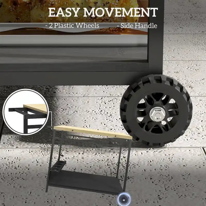3. Easy Mobility: With two smooth-rolling directional wood casters and a convenient side handle, you can quickly move the outdoor serving cart from room to room.