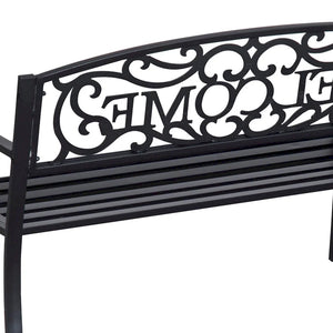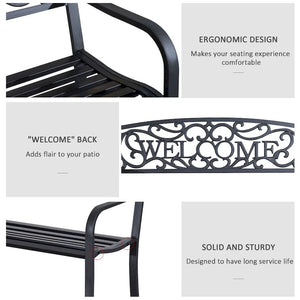 Outdoor Metal Garden Bench with Slatted Seat for Park, Porch, Yard, Entryway, Black
