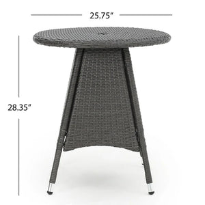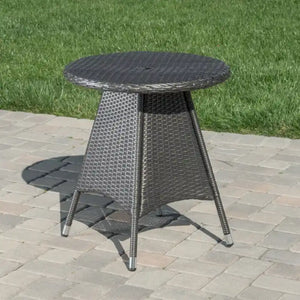 - This bistro table is the perfect addition to any patio set. Designed with wicker to withstand the elements, it will add style to any patio and allow for intimate conversation over delicious coffee or provide the ideal table for drinks for large gatherings. Versatile for any use, this bistro table is a must have for any patio host.