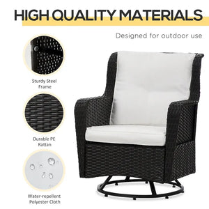 Outsunny 3-Piece Patio Bistro Set, PE Rattan Wicker Outdoor Furniture with Soft Cushions, 2 360 Swivel Rocking Chairs
